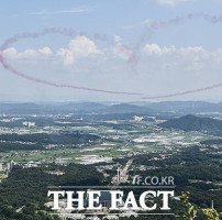 '독립기념관 상공에 펼쳐진 하트' 광복절 축하 비행하는 블랙이글스 [TF사진관]