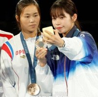 탁구 혼합복식 이어 두 번째 남북 셀카 한국 임애지·북한 방철미, 값진 동메달 획득8일(현지시각) 프랑스 파리 롤랑 가르스 스타디움에서 열린 2024 파리 올림픽 복싱 여자 54kg 시상식에서 임애지(오른쪽)와 북한 방철미가 동메달을 목에 걸고 기념촬영을 하고 있다. /파리=뉴시스[더팩트ㅣ김샛별 기자] 2024 파리 올림…